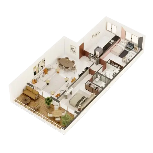Grâce à cette technologie, chaque pièce prend forme avec un aménagement détaillé, intégrant mobilier, textures, couleurs et éclairages.